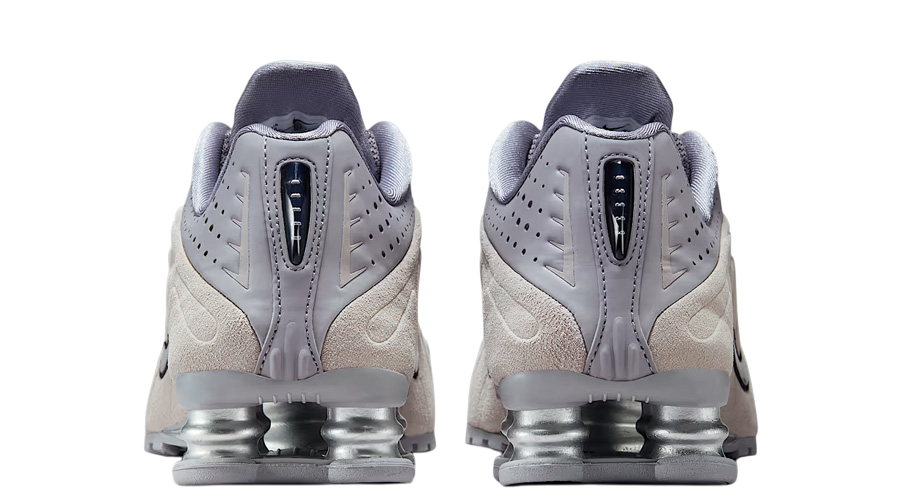 The defining feature of the Shox remains its cushioning system. Four columns sit under the heel, designed to absorb impact and return energy with every step. Nike positioned this technology at the time as a performance innovation, but the design also became an icon of street fashion. On this release, the Shox columns arrive in matching Cement Grey, tying the upper and sole unit together for a cohesive look. The midsole and outsole work with the system to distribute pressure evenly, making the shoe more comfortable for long wear.