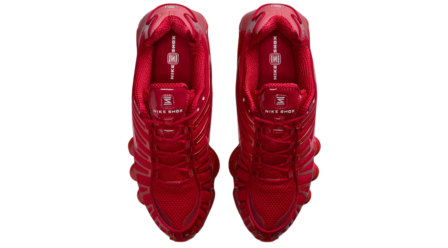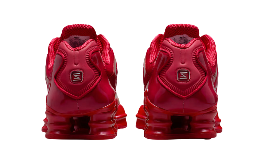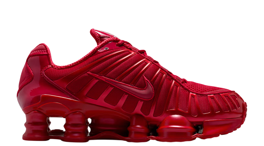 The WMNS Nike Shox TL “Gym Red” comes in hot. All red from top to bottom. No breaks. No soft moments. It grabs attention the second you see it, and it doesn’t let go.