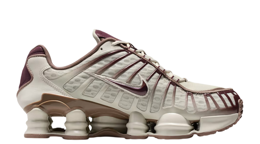 The WMNS Nike Shox TL “Light Bone Burgundy Crush” reimagines an early-2000s icon with a modern, street-ready twist. For Fall 2025, Nike brings back the Shox TL with a palette that feels both nostalgic and refined, blending bold contrast with subtle texture.