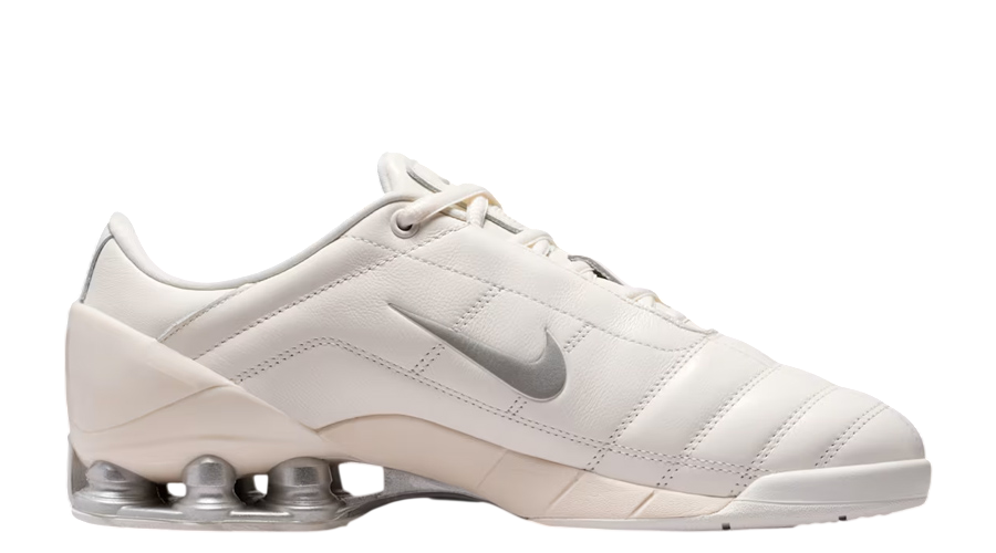 Metallic Silver details do the heavy lifting. You’ll spot it on the Swoosh, mudguard, and the Shox columns underfoot. That contrast brings balance. Classic football DNA meets a sharper, more refined look.