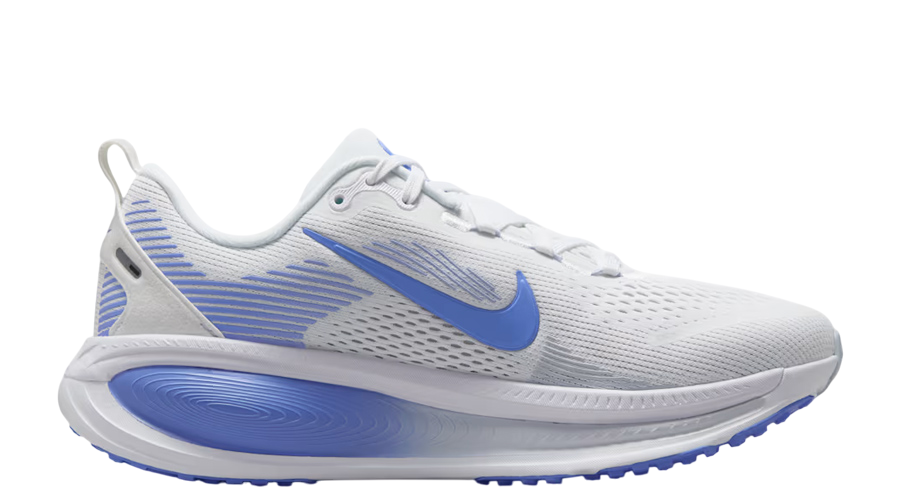 The design stays true to what makes the Vomero line a fan favourite. Its breathable mesh upper keeps airflow steady, while Royal Pulse blue accents add a fresh touch to the clean white base. The sleek silhouette isn’t just for performance — it transitions easily from the track to everyday wear. Pair it with leggings, joggers, or even jeans, and it’ll still look right at home.