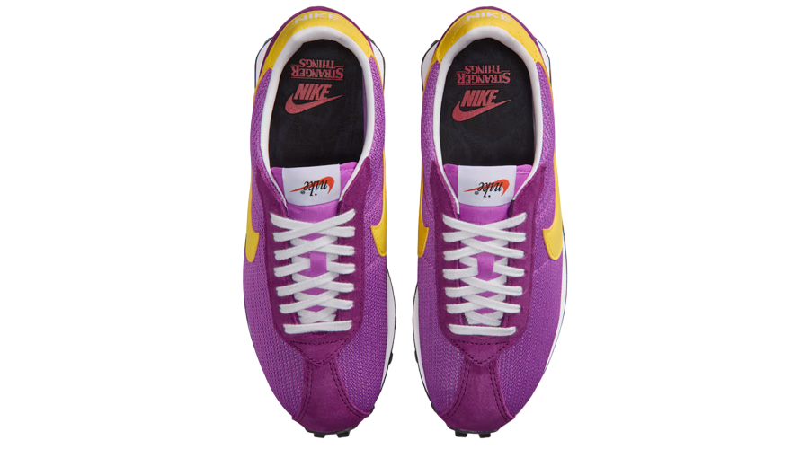 The WMNS Stranger Things x Nike LD 1000 “Erica Sinclair” brings a hit of Hawkins energy straight into a classic Nike runner from the ’70s. The colour palette pulls from Erica’s standout outfits in the early seasons of the show, blending purple and yellow tones that feel bold without losing that retro charm. It’s playful. It’s sharp. And it fits the character perfectly.