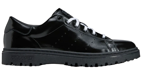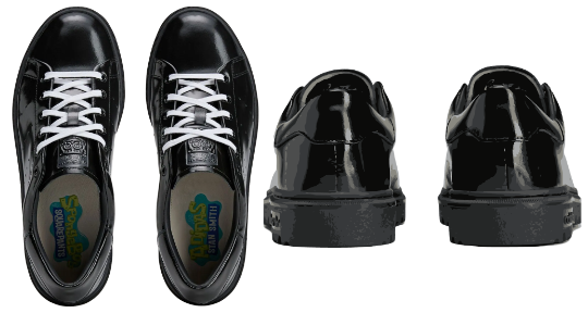 The SpongeBob x adidas Stan Smith Freizeit swaps the usual clean white leather for glossy black patent uppers, keeping things slick and smart while paying tribute to SpongeBob’s uniform. White contrast laces pop against the dark base, while SpongeBob’s smiling face appears on the tongue. Inside, co-branded insoles bring both adidas and SpongeBob’s worlds together in one polished design.
