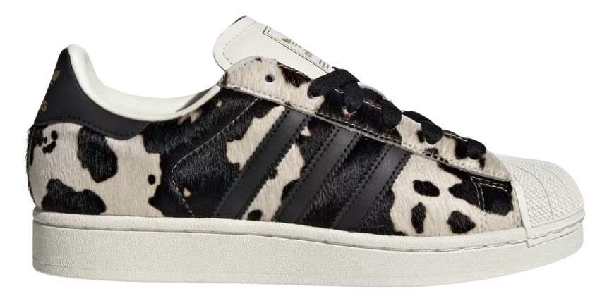 Plush pony hair dresses the Superstar in full cow pattern while black leather 3-Stripes slice through the madness. It’s classic adidas brought into 2025. Keeping that iconic rubber shell-toe and zig-zag sole. A street legend, reborn in cow-print.