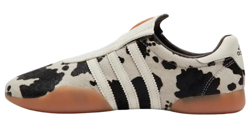 Martial arts roots, fashion future. Laceless, sleek, and covered in cow print pony hair, this women’s-exclusive silhouette slips into lifestyle territory with ease. Serrated stripes wrap underfoot, while a cut-out tongue adds subtle utility. A sleeper pair for the minimalists.
