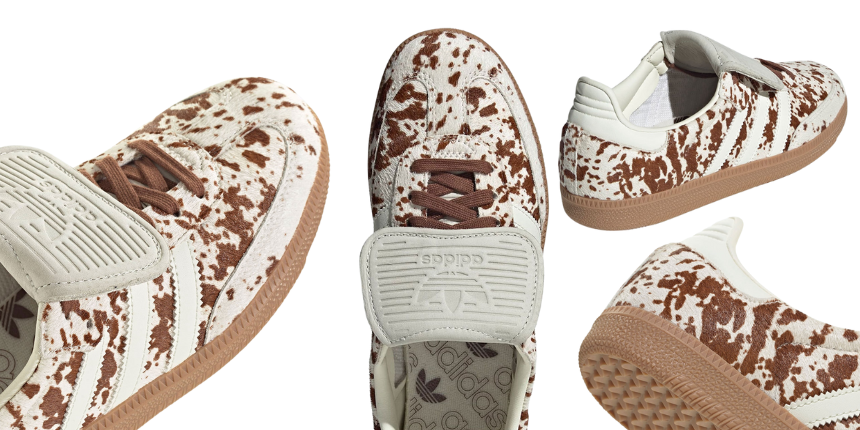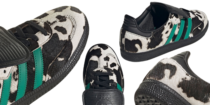 adidas is keeping the animal print craze alive this summer with the upcoming adidas Samba LT “Cow Print”. A follow-up to the “Cheetah” Samba from earlier this year, it’s a fun way to add some interest and intrigue to your everyday outfits.